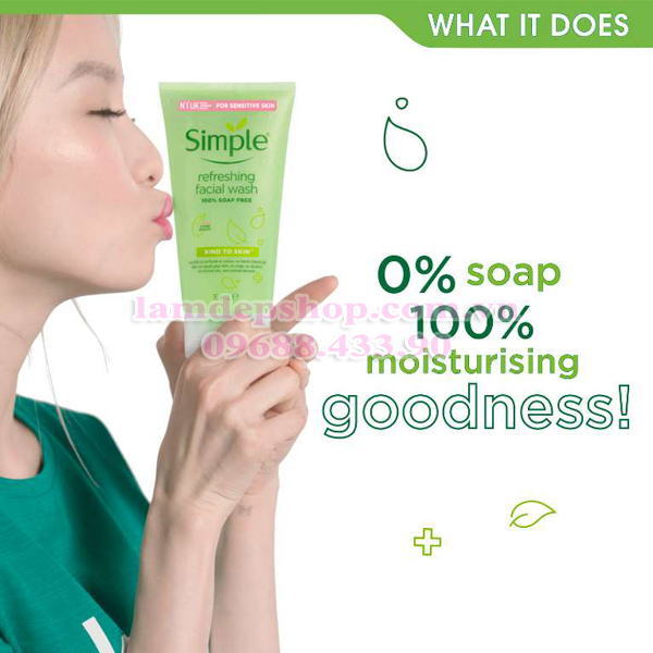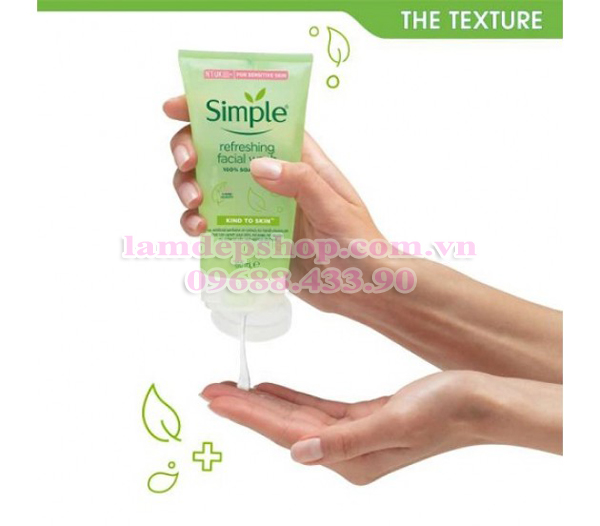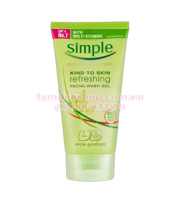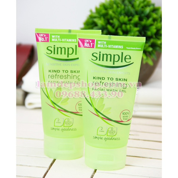 – Simple Refreshing Facial Wash Gel là sự lựa chọn lý tưởng dành cho da mụn vì nó không gây kích ứng mụn, không làm bít lỗ chân lông. Nên không khiến mụn lây lan hay kích ứng.