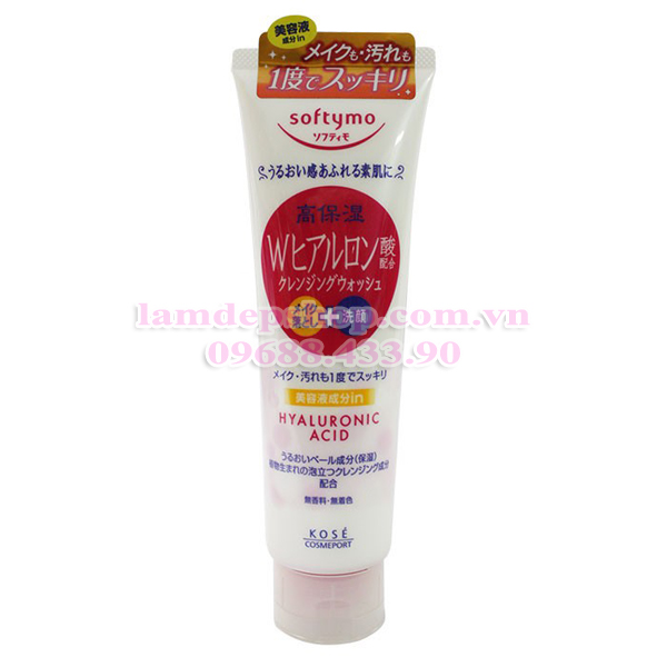 Sữa rửa mặt Kose Softymo Hyaluronic Acid nhẹ nhàng đánh bật và loại bỏ các vết bẩn và tẩy trang.