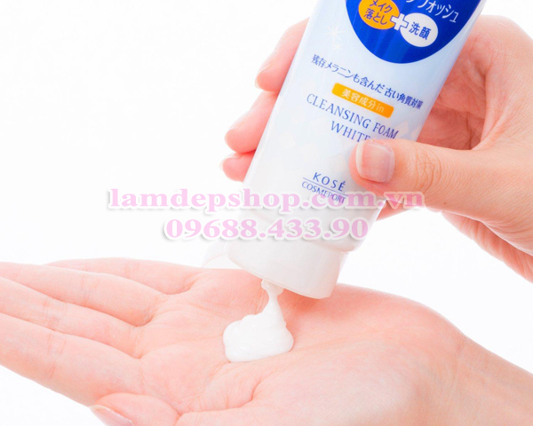 – Bóp một lượng vừa đủ sữa rửa mặt ra lòng bàn tay, nhỏ vào một vài giọt nước.
