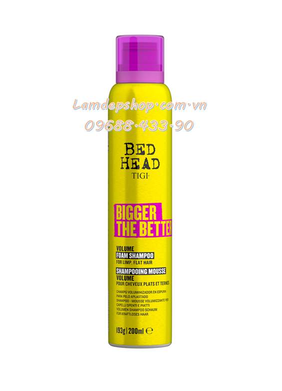 • Dầu gội Bigger The Better đã được phát triển bởi đội ngũ chuyên nghiệp của TIGI, là một loại dầu gội dạng xịt đột phá, với một phương pháp mới và sáng tạo để làm sạch tóc một cách nhẹ nhàng. Dạng bọt sẽ tiết kiệm gấp đôi so với dầu gội thông thường và giảm lượng nước tiêu thụ. Dầu gội tạo phồng không chứa sulphat và nhẹ, để đảm bảo không làm nặng tóc. Nó làm sạch tóc nhẹ nhàng và loại bỏ bụi bẩn tích tụ, mà không làm rụng tóc, tạo độ phồng cho chân tóc.