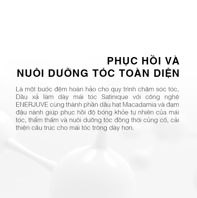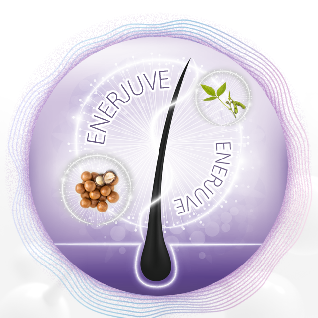 Công nghệ ENERJUVE giúp phục hồi độ bóng khỏe tự nhiên của mái tóc, giúp mái tóc trông dày hơn nhờ vào dầu hạt Macadamia và đạm đậu nành.