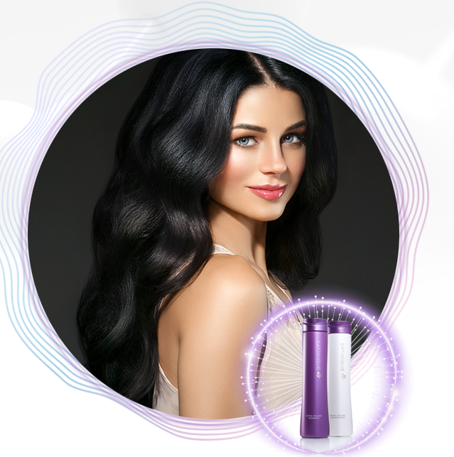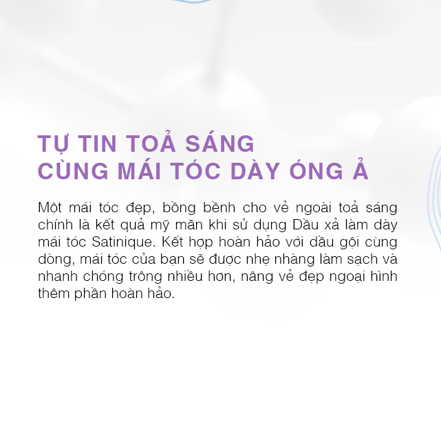 Dầu xả làm dày mái tóc SATINIQUE nhẹ nhàng chăm sóc tóc và giúp tóc trông nhiều hơn.